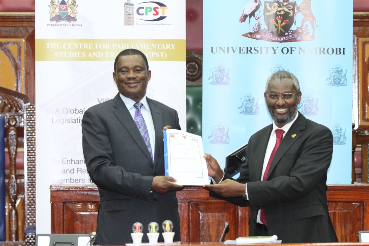 Under the agreement, the University of Nairobi through the Institute of Diplomacy and International Studies (IDIS) will support the Centre for Parliamentary studies and Training (CPST) through provision of relevant technical expertise in areas of training, research and publications. The University is expected to develop training programmes, curricula and capacity building projects for CPST.