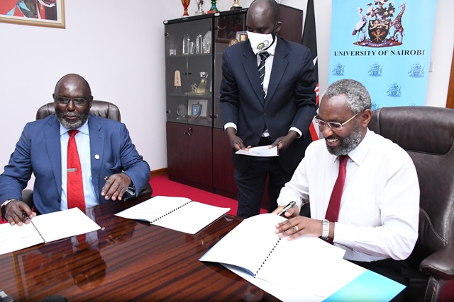 The University of Nairobi (UoN) Vice-chancellor, Prof. Stephen Kiama and the UoN Alumni Association (UoNAA) Chairman, Mr. Isaac Awuondo, officially signed a partnership agreement that will be mutually beneficial to the two institutions.